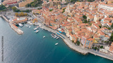 Villefranche, small town in france, French Riviera, Drone view on coast and town