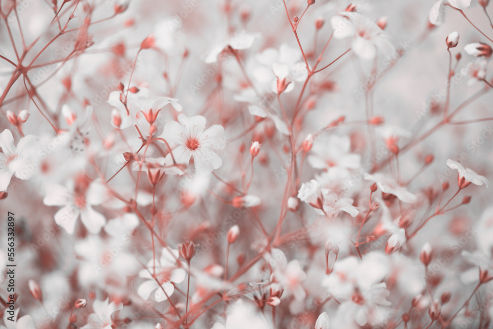 Soft focus blur White flower. Fog smoke pink nature horizontal copy space background.