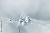 Closeup of a dandelion seed with drops of dew or water in silver color. Beautiful abstract macro background. Selective focus. Art image.