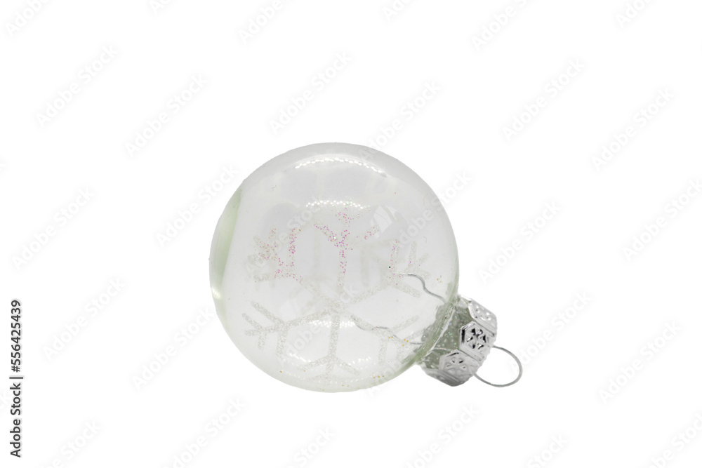 durchsichtige Christbaumkugel mit einer Schneeflocke für den Weihnachtsbaum auf transparenten Hitnergrund
