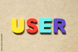 Color alphabet letter in word user on wood background