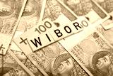 Inscription WIBOR next to polish money. WIBOR is Warsaw Interbank Offered Rate