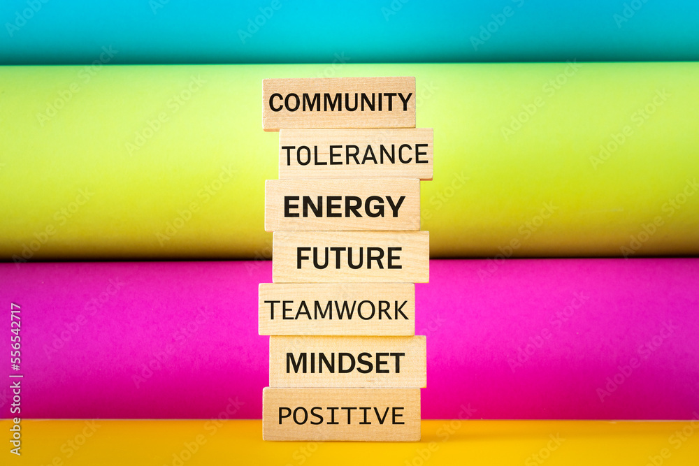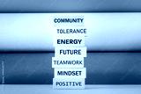 building a community based on positive values, tolerance, teamwork, energy, having fun, looking forward with hope, Social and business concept