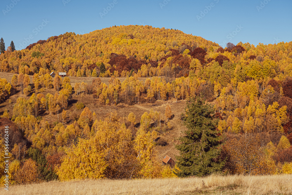 beautiful autumn landscapes in the Romanian mountains, Fantanele village area, Sibiu county, Cindrel mountains, Romania