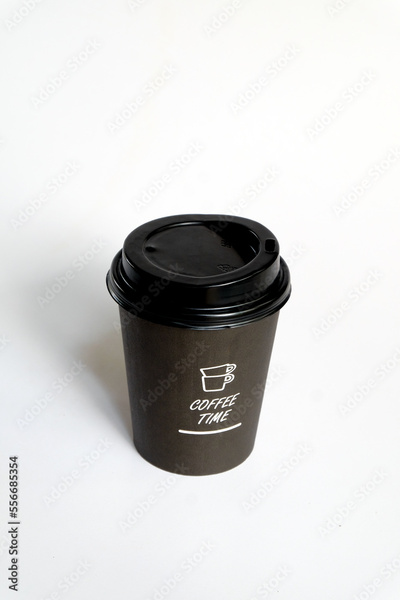 Black paper disposable cup for coffee on a white background. natural eco packaging.
