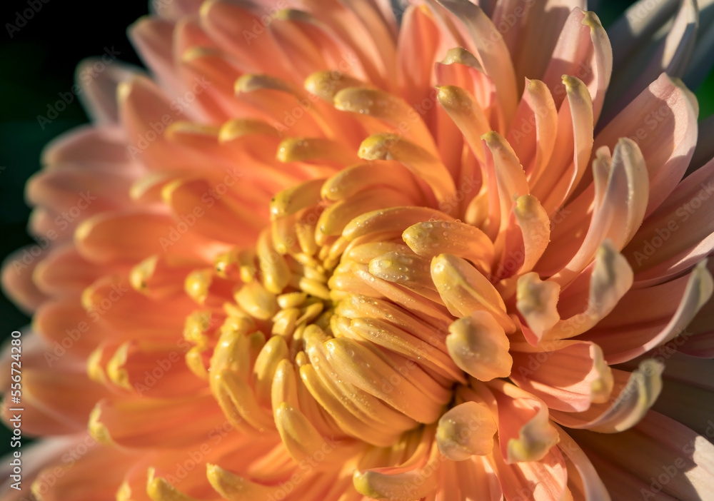 Macro shot of a spring flower. The middle of a chrysanthemum flower