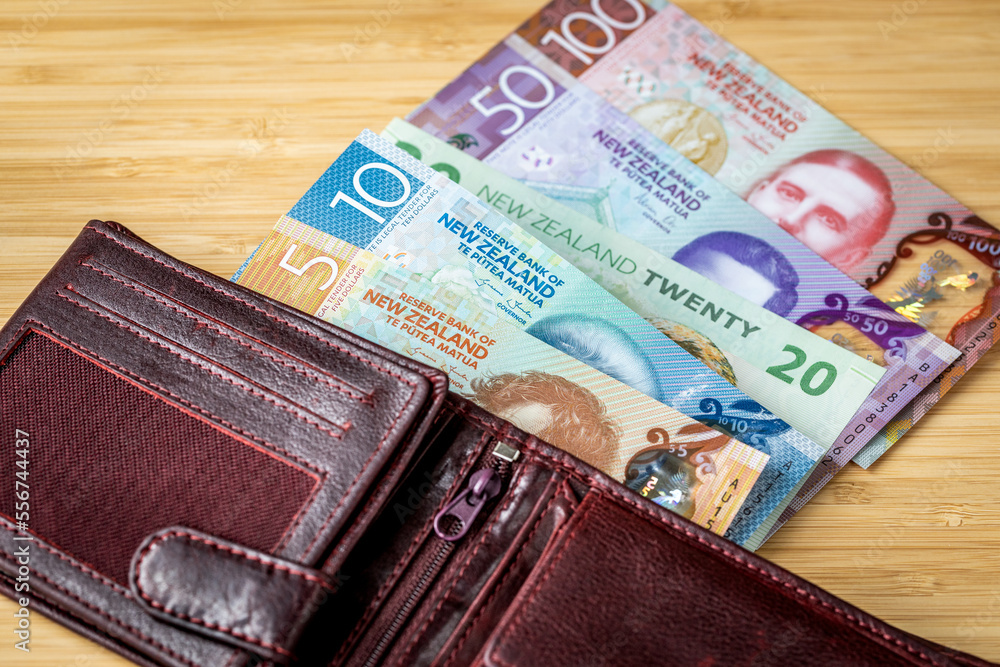 wallet with money, New Zealand dollar banknote