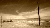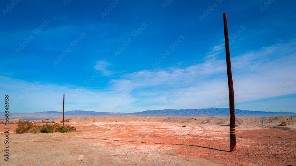 Salton Sea area landscape series, the coastal meadow with poles on the beach, in Southern California, USA