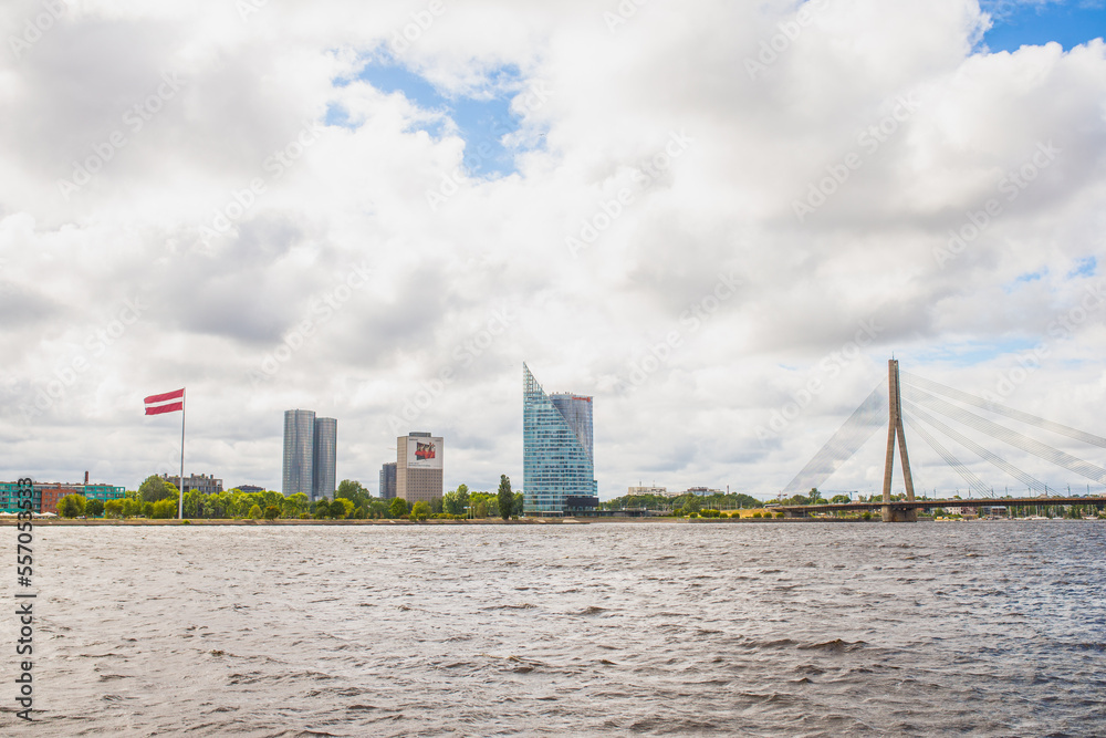 Landscape of summer in Riga, Latvia over river Daugava