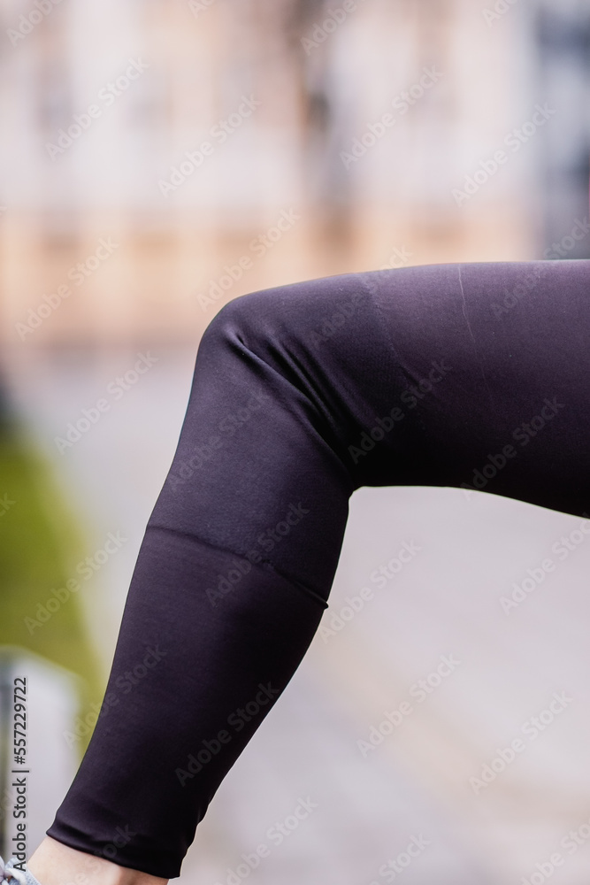 Bent knee with dark leggings