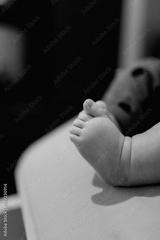 Vertical photo of small infant feet