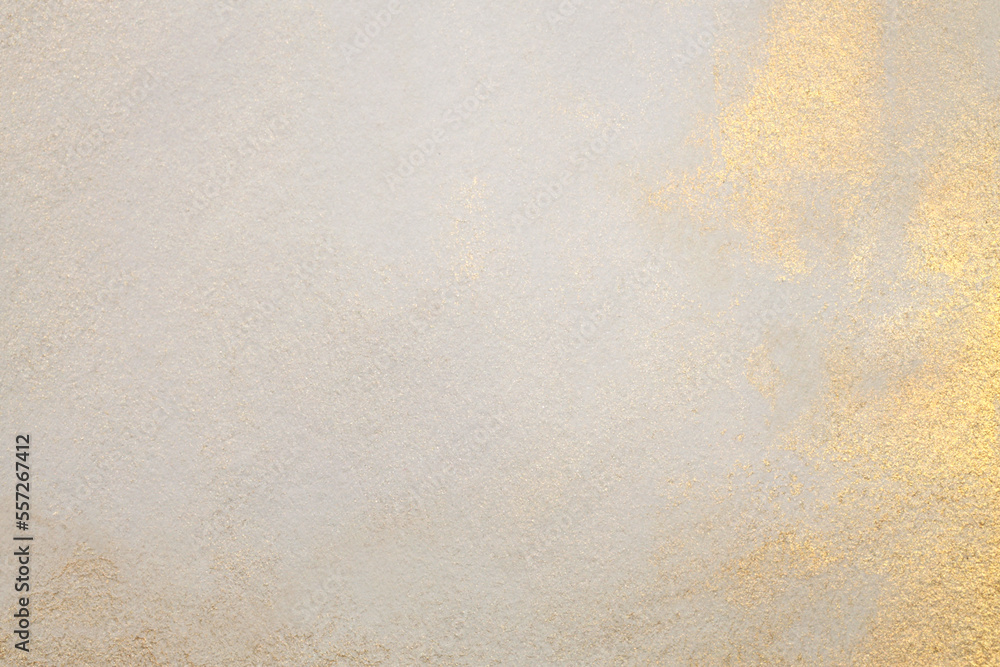 Watercolor paper texture painting wall. Abstract gold, nacre and beige marble copy space background.