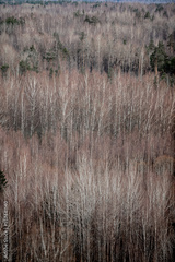 Vertical photo of layers of birch trees in autumn, Latvia