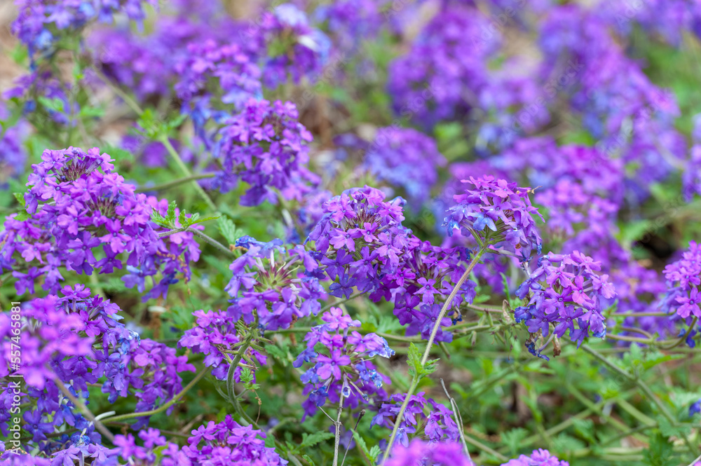 Blooming Blue Flower in the Garden. Verbena Hybrida, Homestead Purple Verbena, Glandularia canadensis, Garden verbena