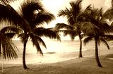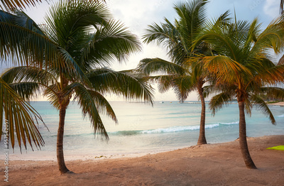 Mexico Caribbean coast tropical beach with coconut palm trees.
