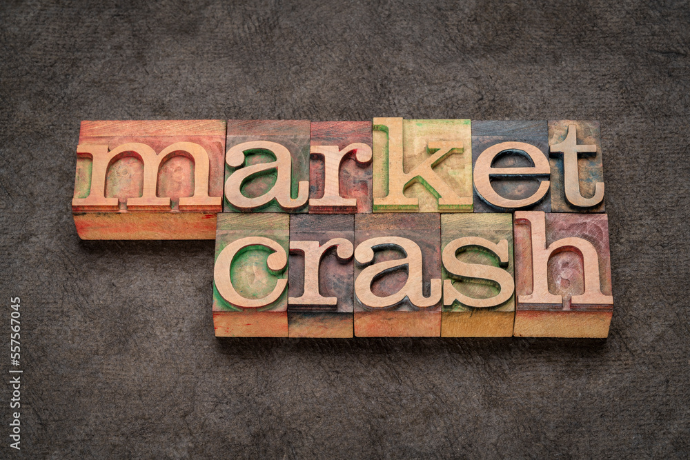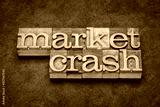 market crash word abstract in letterpress wood type against black textured paper, business, economy and recession concept