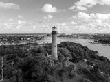 Aerial center view of Jupiter Inlet lighthouse, located on the Florida East Coast. December 2022