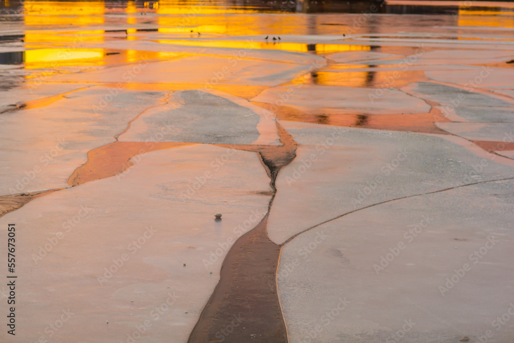 Big ice pieces in river Daugava in capital of Latvia, Riga