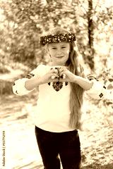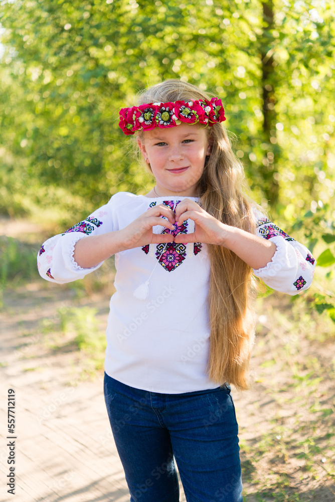 little girl in national Ukrainian clothes - vyshyvanka. Ukraine, child in nature