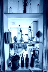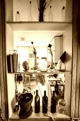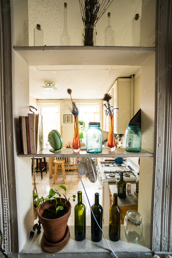 Interior bottles and books in usual home interior