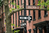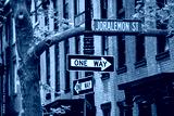 One way street sign with Joralemon street sign in Brooklyn, New York City, USA.