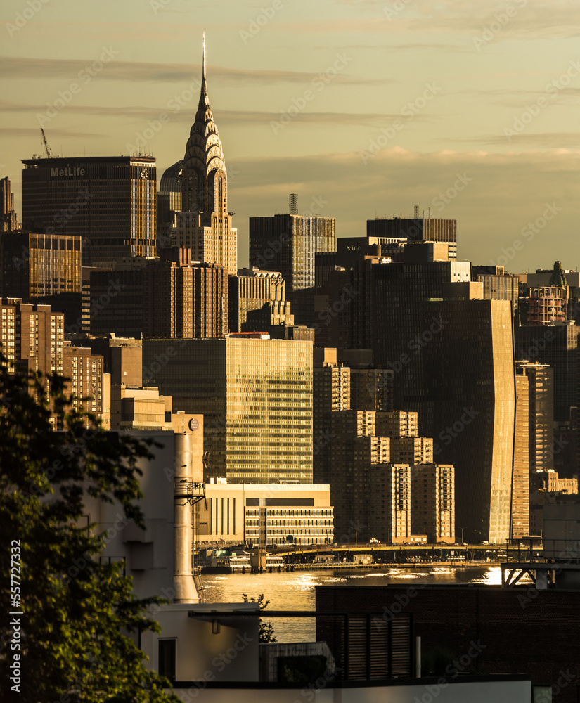 Sunrise over Chrysler building and 34th street building in early morning NYC, USA
