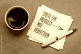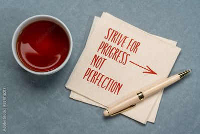 Strive for progress, not perfection - handwriting on a napkin with a tea, success and personal development concept