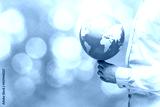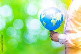 ESG concept, Environmental, Social, governance, Value-based business, Sustainable development, Empty space, Businessman holding a planet earth balloon in his hands