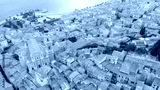 Aerial view on coast and buildings in old Town Menton, France. Drone photo. High angle view of town