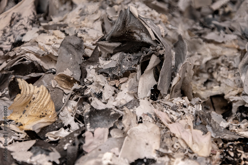 Burnt paper and ashes, close-up. Backgrounds and textures.