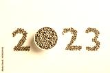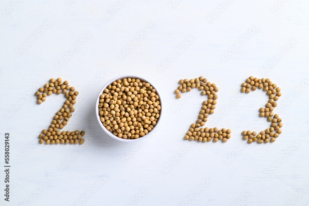 2023 new year made from soybean seeds on white background