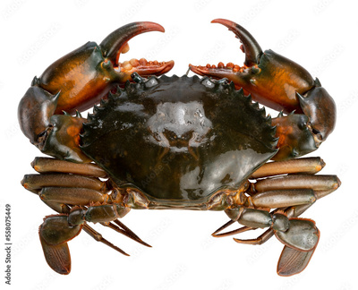Raw black Crab on white background, Scylla Serrata or Serrated mud crab on white Png File.