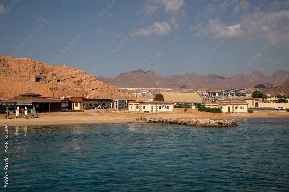 Beautiful sea coast. Sunny summer day. Crystal clear water. Colorful sea landscape. Clear water.