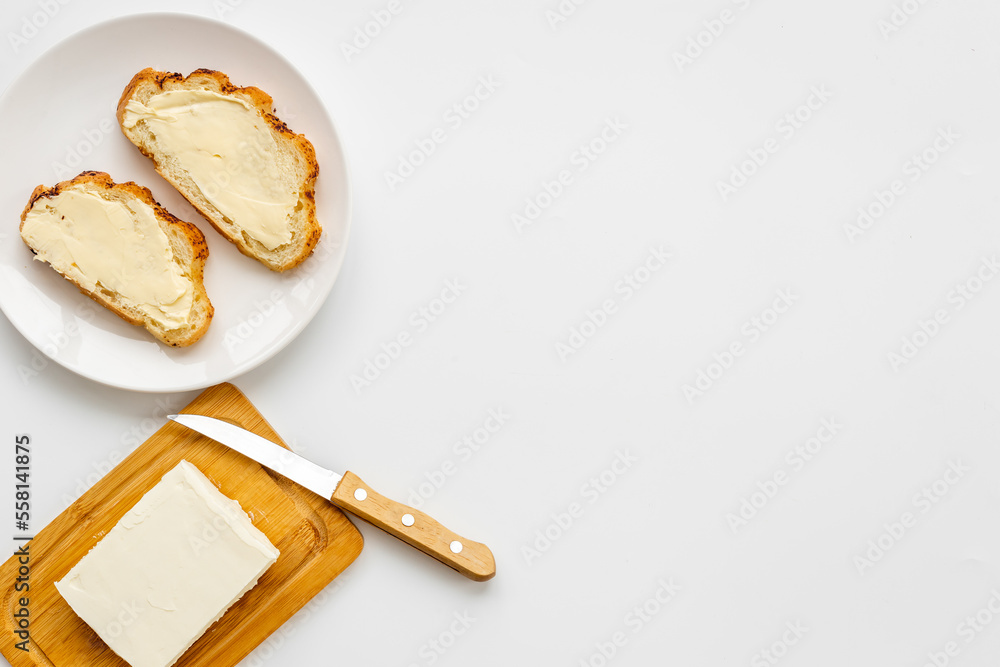 Slices of toast bread with butter. Breakfast with sandwiches