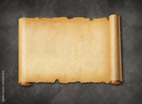 Old mediaeval paper sheet. Horizontal parchment scroll on a concrete wall