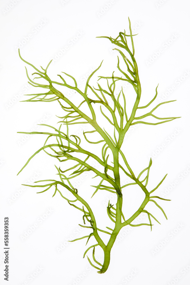 close up green gracilaria algae (gracilaria lameneiformis) isolated on white background.