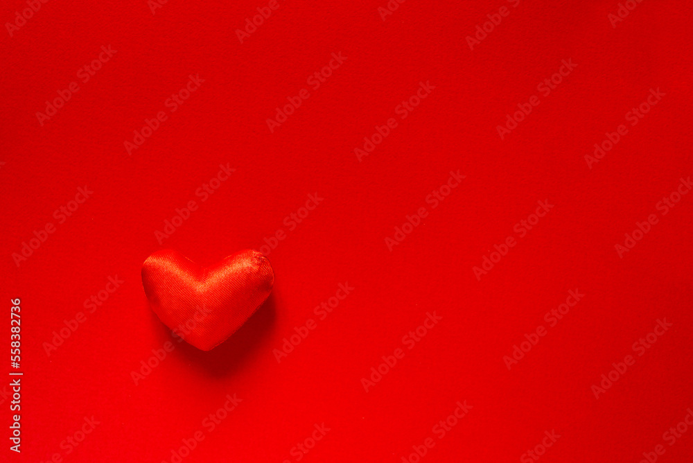 Valentine's day banner with one red heart on a red background with space for text. Love and happiness.