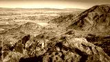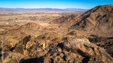 Joshua Tree National Park Hiking Trail Landscape Series, twisted, bristled Joshua trees over arid desert meadow, Twentynine Palms, Southern California, USA