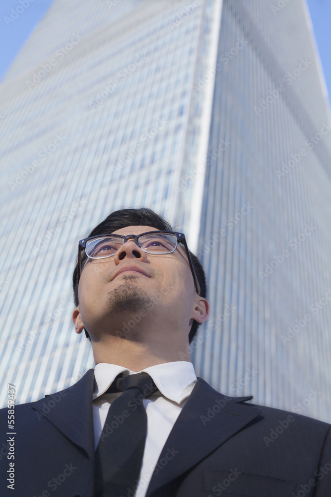 Businessman by the world trade center in Beijing, China