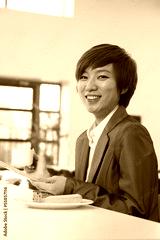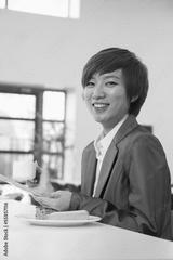 Young business woman in company cafeteria