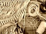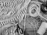 An artist working on an arts and crafts macrame at home
