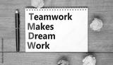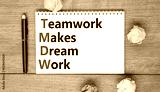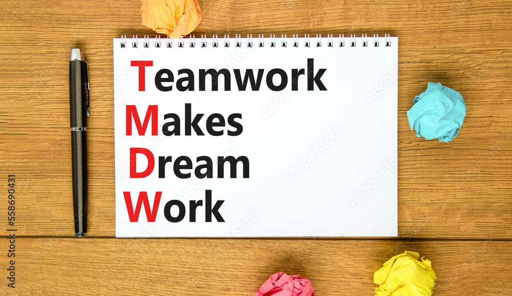 TMDW Teamwork makes dream work symbol. Concept words TMDW Teamwork makes dream work on white note on beautiful wooden background. Business TMWD teamwork makes dream work concept. Copy space.