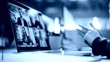 Multiethnic People Conference Meeting Online and Discussing Business Project. Laptop Screen Containing a Group Video Call. Colleagues Working From Home and Collaborating on Internet