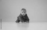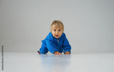 Little, happy and smiling cute baby in the studio. Portrait of a one year old baby. The concept of happiness.
