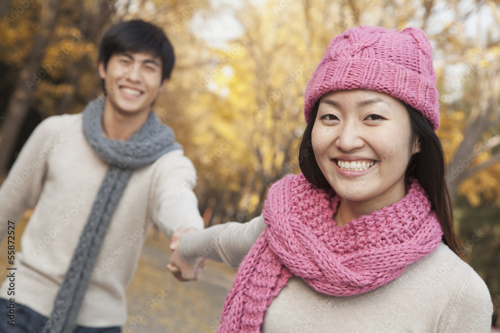 Portrait of Smiling Couple Holding Hands in Park