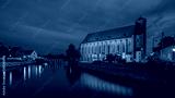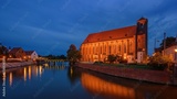 NIght panorama of tumski bridge and church, Wroclaw, Poland