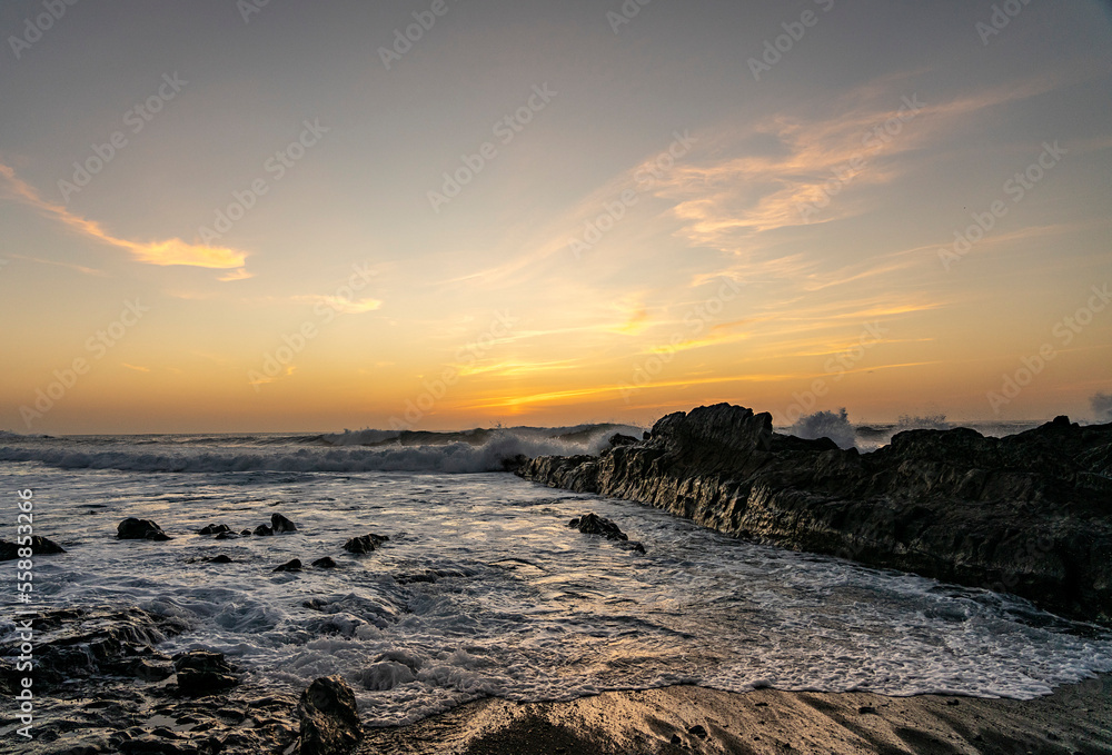 Sonnenuntergang am Meer in El Golfo, Lanzarote, Kanaren, Spanien