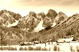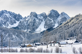 beautiful panoramic snowy winter landscape with Dachstein mountins in Gosau