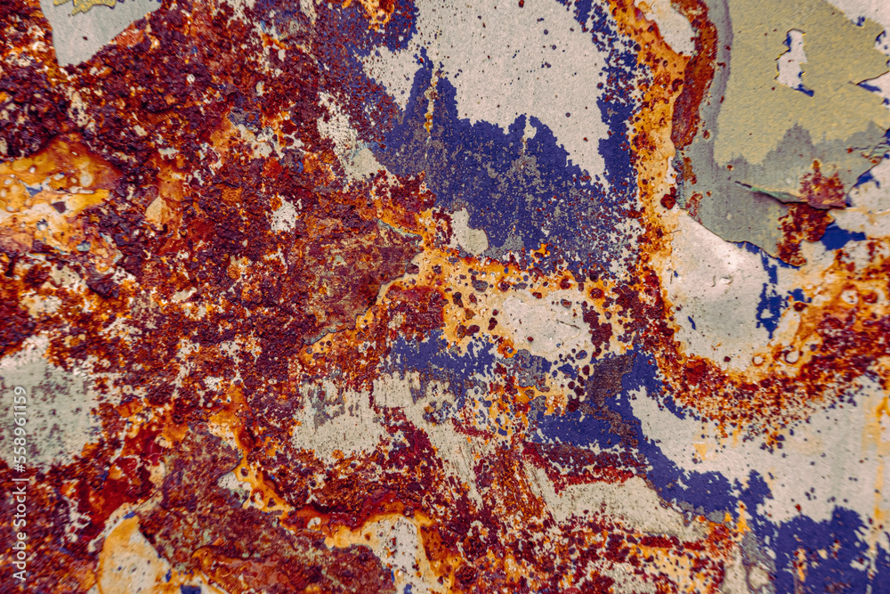 Abstract macro view of the paint and rust on the body of a car