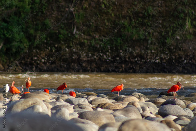 flamingos on the river